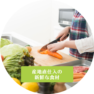 栄養士による職種別にカロリー計算されたメニューをご用意。産地直仕入の毎日仕入れ体制の為、常に新鮮な食材を提供致します。献立に基づいた食材を配送しますので、献立通りではなく、自由に調理して頂けます。