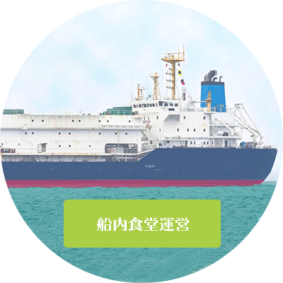 船員さんへ毎日食事を提供する船舶調理士や司厨員を配置し、栄養バランスを考えた豊富なメニューを演出します。また、長期航海にも対応できるように食材の仕入や搬入・保管など、一括管理したシステムを構築しております。